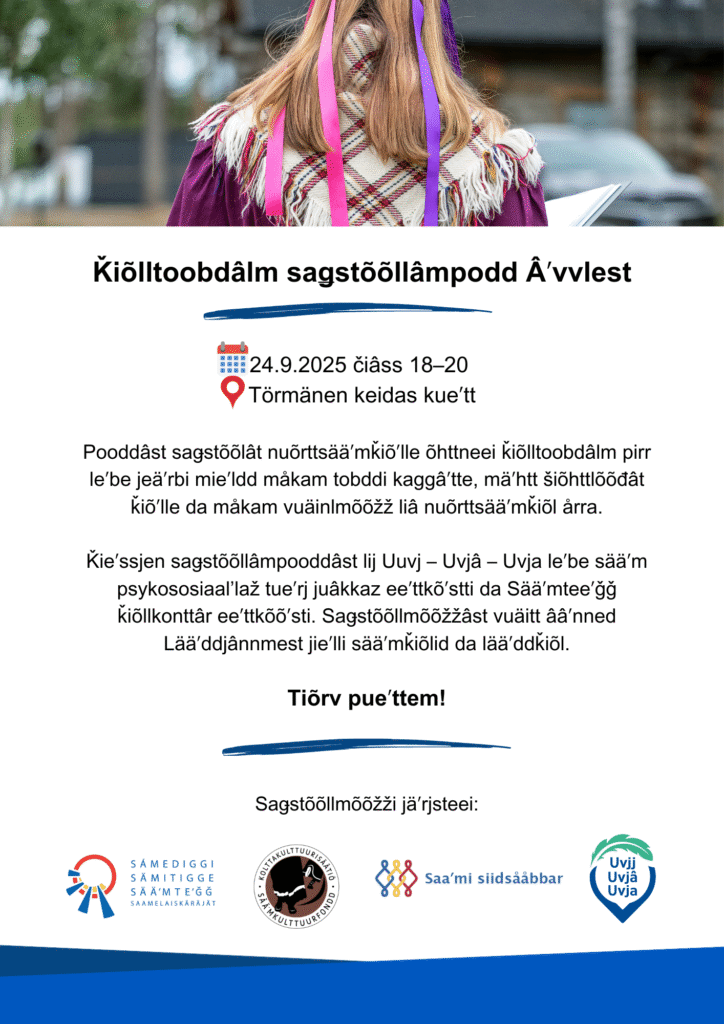Tiõrv pueʹttem! Saǥstõõllmõõžžid jäʹrjstet õhttsažtuâjast Saaʹmi siidsåbbrin da Sääʹmkulttuurfoondin.